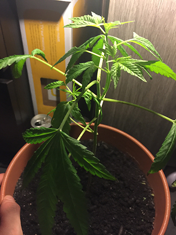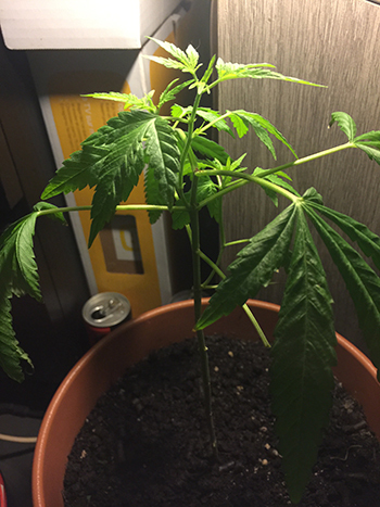 Hoi Mike, wat een schattig klein wietplantje! Natuurlijk valt de plant nog te redden; weggooien is altijd zonde want het duurt sowieso weer een maand om vanuit een zaadje een nieuwe wietplant van dit formaat op te kweken. Ik vraag me alleen wel af wie je met ‘ze’ bedoelt, lopen er een paar mysterieuze Edward Scissorhands bij jou in huis rond of zo?