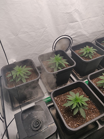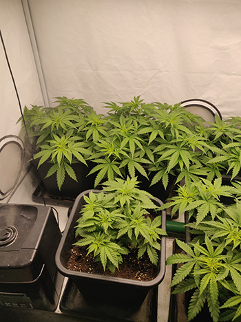 De reden om dit toe te voegen is voornamelijk omdat de planten in deze ruimte op een of andere manier altijd kort bij de grond blijven, en nauwelijks strekken. Dit kan aan meerdere factoren liggen en deze zijn we nu aan het uitsluiten. Bijna het gehele klimaat is nu onder controle. Nu de planten in de groeifase zitten houden we een constante temperatuur van rond de 25 ⁰C aan, bij een luchtvochtigheid van een keurige 60 tot 65%. Mede daardoor is de keuze gemaakt om het advies van Spliff Seeds te volgen, en ze op tijd om te zetten. Hoewel er van de strek nog niet veel te zien is, hebben we nog een goede drie weken groei voor de boeg. We gaan zien wat ze doen…