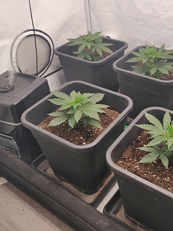 De oplettende lezer ziet misschien de aanpassingen in onze kweekruimte. In het midden van de tent ligt een groene buis. Dit is een zogeheten tube heater. En met dank aan mijn broer hebben we nu ook een hele fijne luchtbevochtiger.
