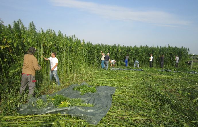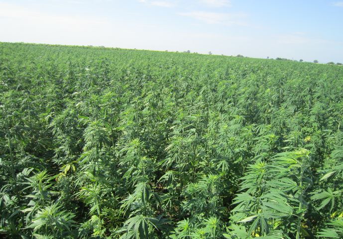 - Een veld vol met wat minder jonge hennepplanten