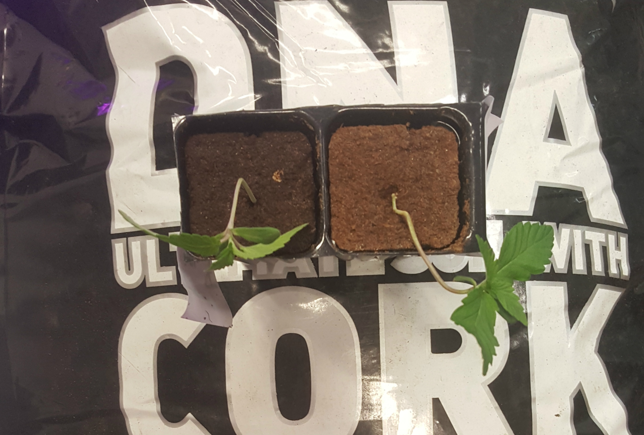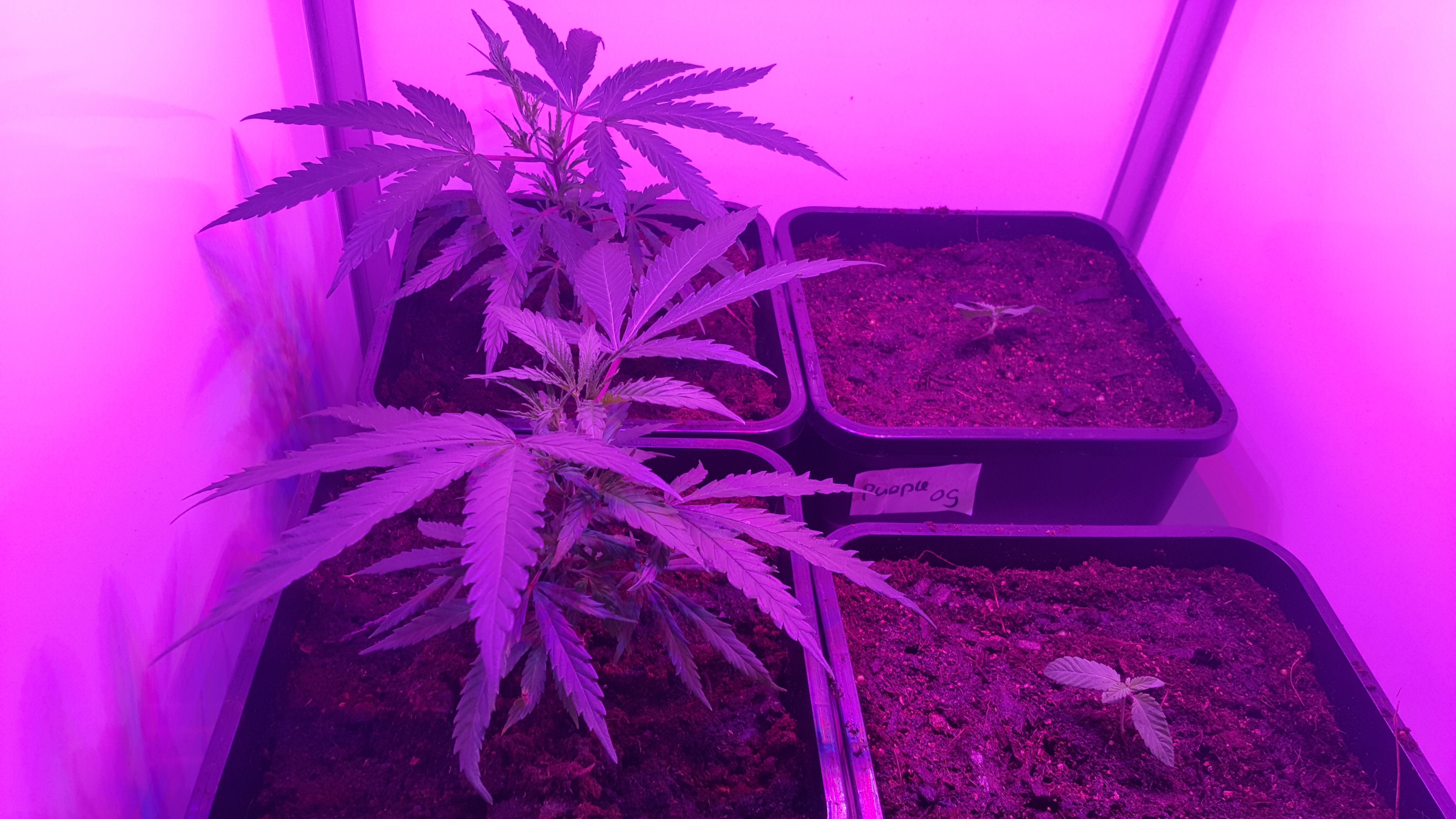 Om de plaats van de twee heren op te vullen, heb ik van een bevriende kweker twee gefeminiseerde zaadplantjes gekregen waar ik superblij mee ben! De dames zijn geen 3 weken oud, maar ongeveer 1 week geleden ontkiemd. Maar het zijn niet de minste soorten, namelijk een Purple OG en een Purple LA. Twee indica dominante F1 hybrides van DNA Genetics. De Purple OG is een kruising tussen de meervoudig cupwinnaar OG #18 en Purple Wreck en de Purple LA is een paarse kruising tussen een LA Confidential en een Purple.