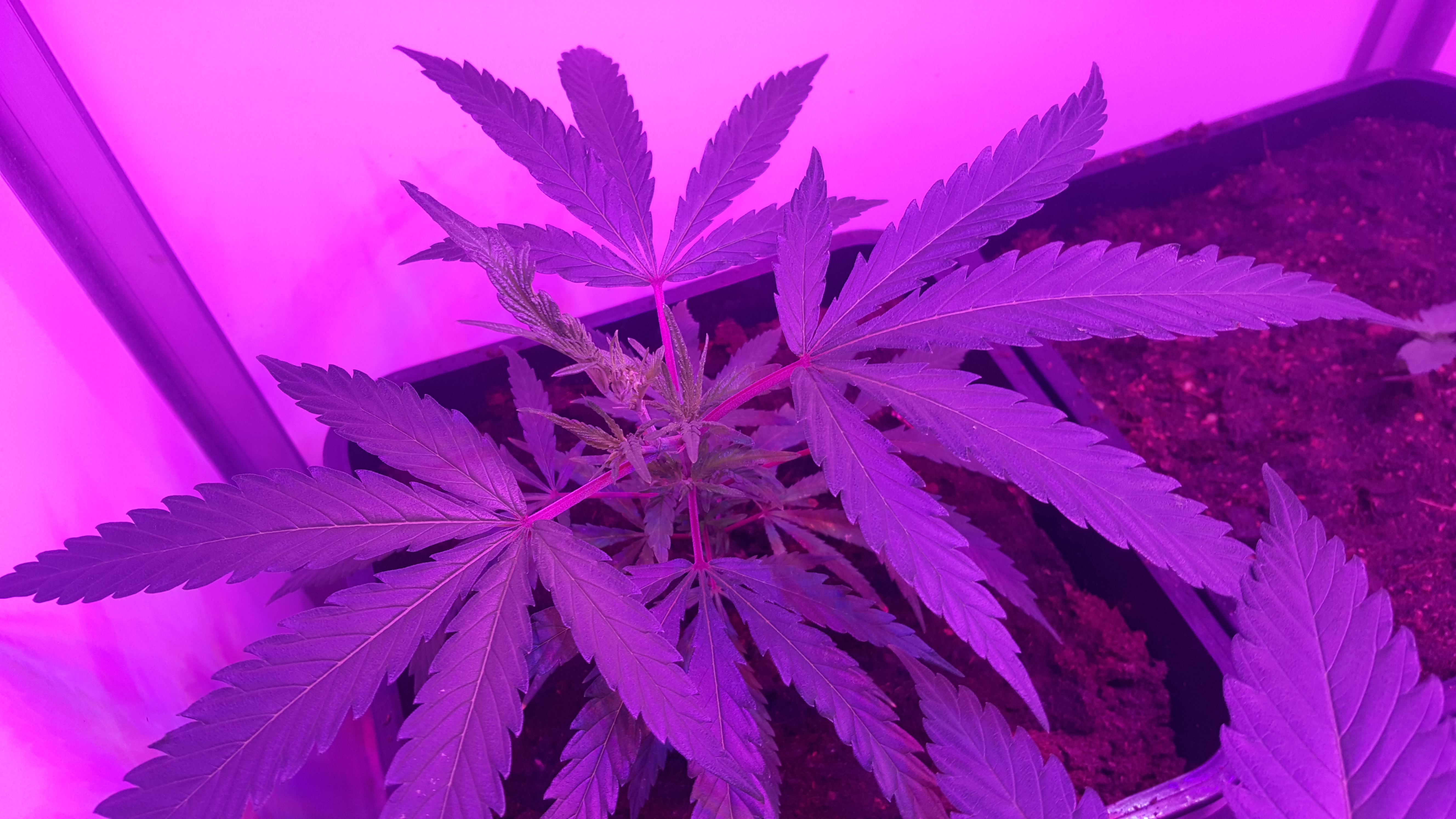 De Silver Star Haze stekken zijn gelukkig wel dames. Hun moeder is buiten in de tuin ook begonnen met de bloei en de stekken zijn sinds vorige week een flink stuk gegroeid. Ik heb ze vorige week gefimt en ze beginnen zich mooi te vertakken. De groei zit er lekker in en de bladeren zijn mooi groot en diepgroen terwijl de stammen net als die van hun moeder buiten duidelijk een paarse kleur hebben. Ik hoop dat de twee nieuwe plantjes de stekken een beetje bij kunnen houden qua groei.
