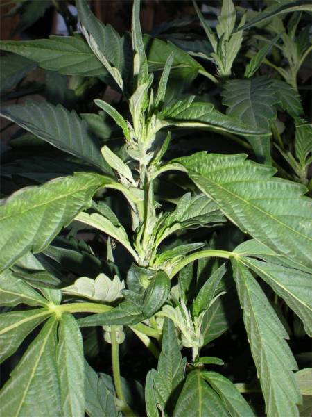 De eerste nieuwe takken en bladeren zien er wellicht wat misvormd uit. Bladeren met maar 1 bladvinger waaraan de bekende gekartelde rand ontbreekt. Naarmate de tijd verstrijkt zullen je bladeren er weer als normaal uit gaan zien. Ook zul je merken dat een plant die op deze manier opnieuw gaat groeien, daarbij veel vertakkingen aanmaakt, wat weer handig is wanneer je de plant zou willen scroggen of gewoon wanneer je van compacte struiken houdt.