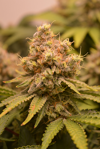 Waarom ik dat denk zie je misschien zelf ook wel. Overal in de kweekkast groeien grote compacte toppen met opgezwollen zaadzakjes en bedekt met een zware witte laag trichomen. Zelfs onder het bladerdek is alles hard en compact en er zit eigenlijk geen enkele fluffy of luchtige top tussen.