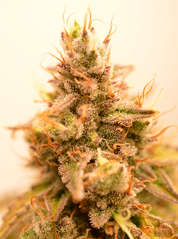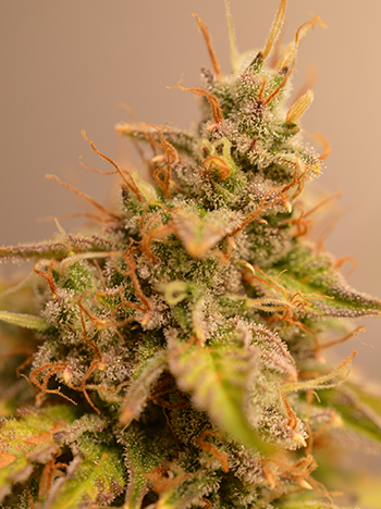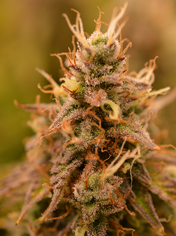 Ik pak die foto’s er maar meteen even bij, want het zijn close-ups van de toppen zoals die er vlak voor de oogst uitzagen. Zoals je ziet zitten de toppen vol met trichomen. Ze zijn niet zo dik als die van de Sneeze waren maar zorgen wel voor een heerlijke zoete Haze geur. De bloeiharen zijn nagenoeg allemaal bruin en ingedroogd, op enkele witte haren helemaal bovenaan de toppen na.