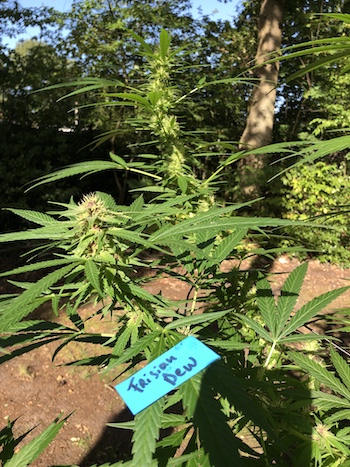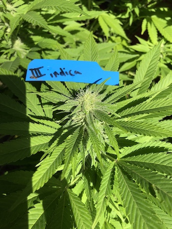 De indica’s van CNNBS zijn ook aan hun bloei begonnen. Indica #1 heeft nog de minste topvorming maar zoals je op de foto ziet is deze dame wel ver boven me uit gegroeid en is ze de grootste plant van het jaar geworden. Indica #3 is goed op weg en krijgt net als Mohammed (indica #2) mooie topvorming. Echter onderscheid deze indica #3 zich door de aanmaak van trichomen. En ook al zijn de toppen nog niet zo heel ver, ze zit wel al helemaal onder en begint ook al goed te kleven!