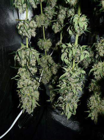 Deze planten hebben wel iets meer blad en knipwerk dan bijvoorbeeld de Chocolope, maar de kushgeur is exeptioneel! Ik kan niet wachten om de wiet te roken, maar doe dat uiteraard wel. Ik heb de planten een dikke 10 weken verzorgd en ga de boel nu natuurlijk niet ophaasten bij het drogen. Gewoon 10 dagen laten hangen met alleen de afzuiger zachtjes aan, dat is mijn advies. Om te checken of de wiet al droog genoeg is, kun je even een paar takjes proberen te breken. Als ze daarbij met een duidelijk hoorbare ‘knak’ breken, dan is het goed en kun je de toppen in potten stoppen om ze te laten curen.