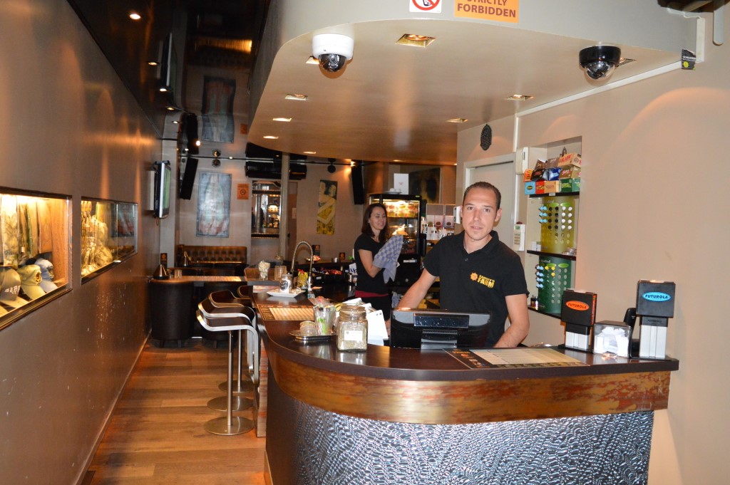 Het is nog rustig op deze regenachtige woensdag, dus ik trek mijn nat geregende jas uit en ga gezellig aan de bar zitten waar de barman net bezig is met het inruimen van een voorraad heerlijke verse chocolade space-cupcakes. Ik raak aan de praat met manager James over de cakes en vraag hem of ze die zo mogen verkopen. ‘Ja, dat mogen we, maar we moeten wel op ieder cakeje precies vermelden hoeveel gram wiet erin zit. Spacecake kan harder aankomen dan wanneer je blowt of dampt, dus dat hebben we er ook maar opgezet. Al is onze spacecake goed te doen voor iemand die af en toe blowt, in elke cupcake zit 0,2 gram wiet in boter verwerkt.’