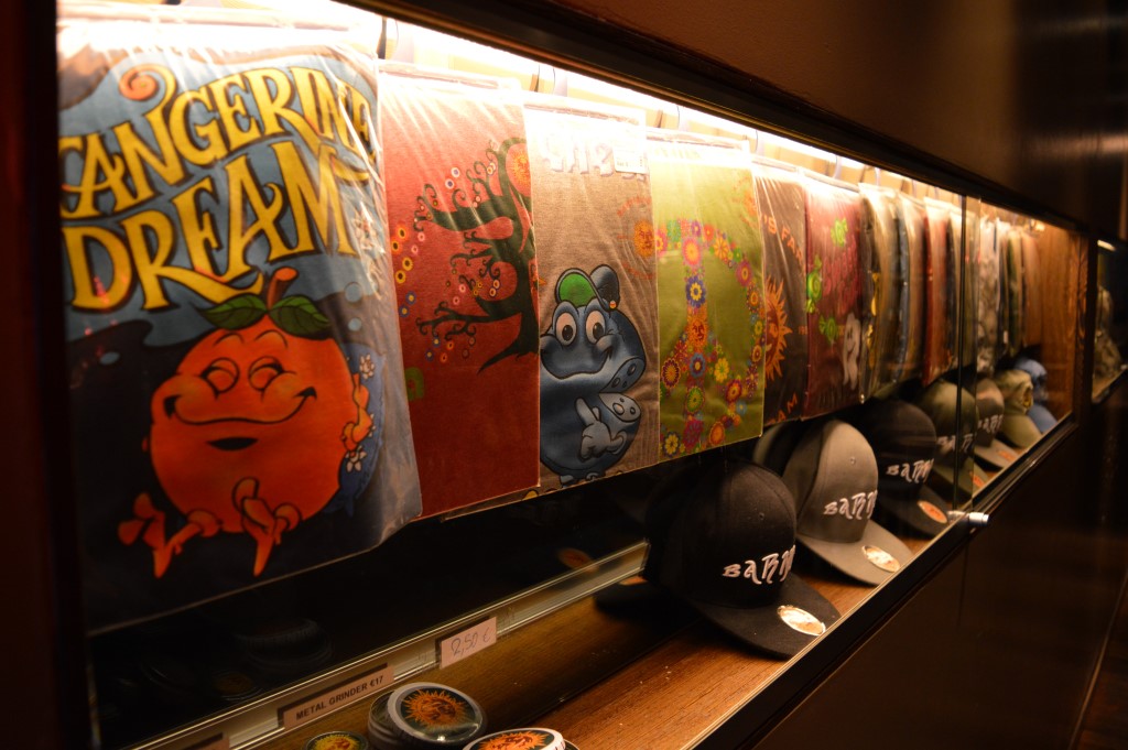 Ik voel me direct welkom in de Lounge, de shop heeft een chique maar warme design inrichting waar duidelijk over nagedacht is. Een lange vitrine aan de voorkant van de shop geeft zicht op een mooie collectie shirts, grinders, caps en natuurlijk de eersteklas cannabiszaden van Barney’s. In het midden van de shop staat een ronde bar waar je in de Lounge niet lang alleen zult zitten. Mocht je wel alleen, of met iemand onder vier ogen willen chillen, dan kan dat aan een van de tafels achter in de coffeeshop. Wil je echt even relaxen dan is daar ook een heerlijke bank in Chesterfield stijl.