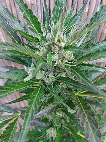 De tweede is een sterkere wiet. Deze plant blijft wat kleiner maar heeft een grote harsproductie. Haar toppen hebben mooie paarse tinten. De wiet is nu al lekker om te roken maar moet eigenlijk nog even curen.