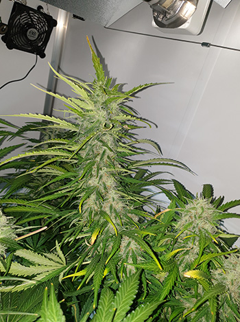 De AK Choco Kush staat nog steeds rechtop maar ze wordt wel topzwaar nu. Haar aanééngesloten hoofdtop is nog steeds 35 centimeter maar wel zichtbaar dikker geworden. De diameter van deze knoepert is nu 6,6 centimeter. Links achterin de CNNBS G-Kit XL vinden we de kleinste Mohammed. Dit dametje is aardig aan het uitzetten. Met een aanééngesloten hoofdcola van 27 centimeter en een diameter van 5,6 centimeter is ze minder klein dan je op het eerste gezicht zou denken.