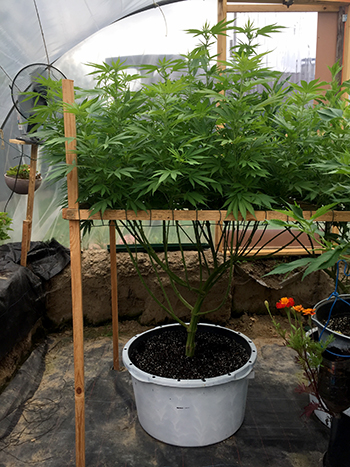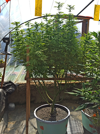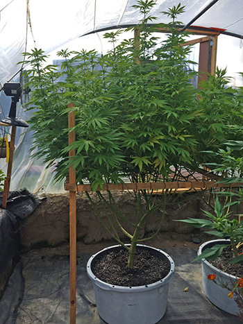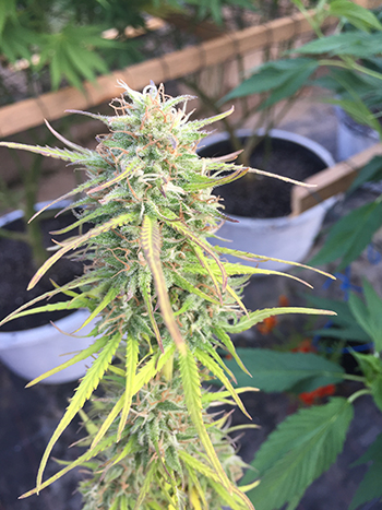 Hallo mede buitenkwekers, het einde is bijna daar en dit voel je al goed. ’s Nachts is het nog maar 10 graden op het moment. Voorlopig kan ik de lekkere en indringende geur nog ontmaskeren met twee potjes Ona Pro maar ik weet niet hoe lang dat nog lukt. De dames beginnen steeds sterker te ruiken. Nog een kleine maand bloeien en dan kunnen we oogsten. Daarna moeten we zes maanden wachten tot we in het voorjaar weer opnieuw kunnen beginnen.