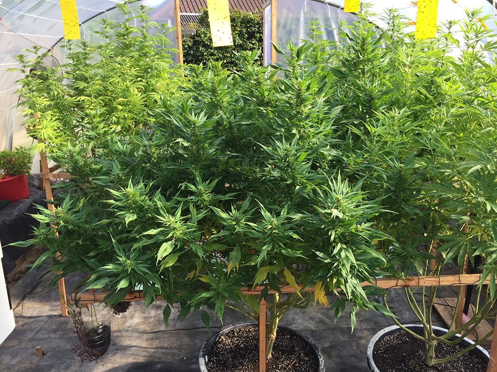 Ben je ook zo nieuwsgierig naar de wietplanten in de verzonken tuinkas van Mogow? De laatste keer dat daar we een kijkje namen, was de bloeifase nét begonnen en stonden de dames erbij zoals je hier op de openingsfoto ziet. Inmiddels is september alweer bijna gepasseerd, en dat moét gewoon tot de nodige toppen geleid hebben.
