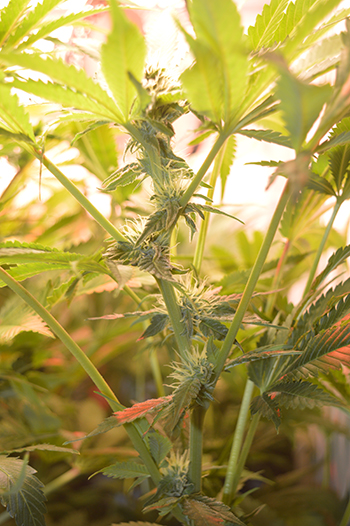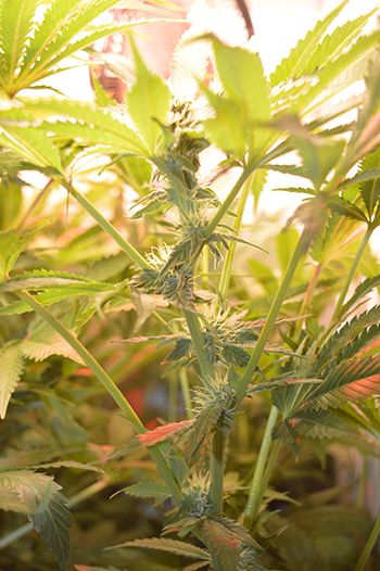 Ik tel de derde week alweer van de zichtbare bloei, en de toppen zien er veelbelovend uit. Er komen steeds nieuwe witte bloeiharen bij en de takken worden ook onder het bladerdek steeds voller. De planten zijn ook weer een klein stukje gegroeid en zijn – met dank aan het Flow Hydroponics Systeem – enorm te noemen. Met ingang van deze week zitten er ook trichomen op, en begint de CNNBS G-Kit steeds meer naar Mohammed te ruiken. Even een paar foto’s om te laten zien wat ik bedoel.