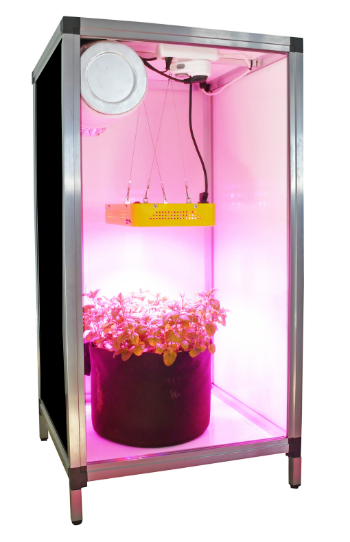 Aan de buitenkant van de kast is niet te zien dat het om een kweekmachine gaat. Het apparaat lijkt meer op een koelkast, en aangezien de ingebouwde afzuiger volledig geisoleerd is kun je een speld horen vallen. Zet er een mooi bosje bloemen op en een nog mooier bosje bloemen in.