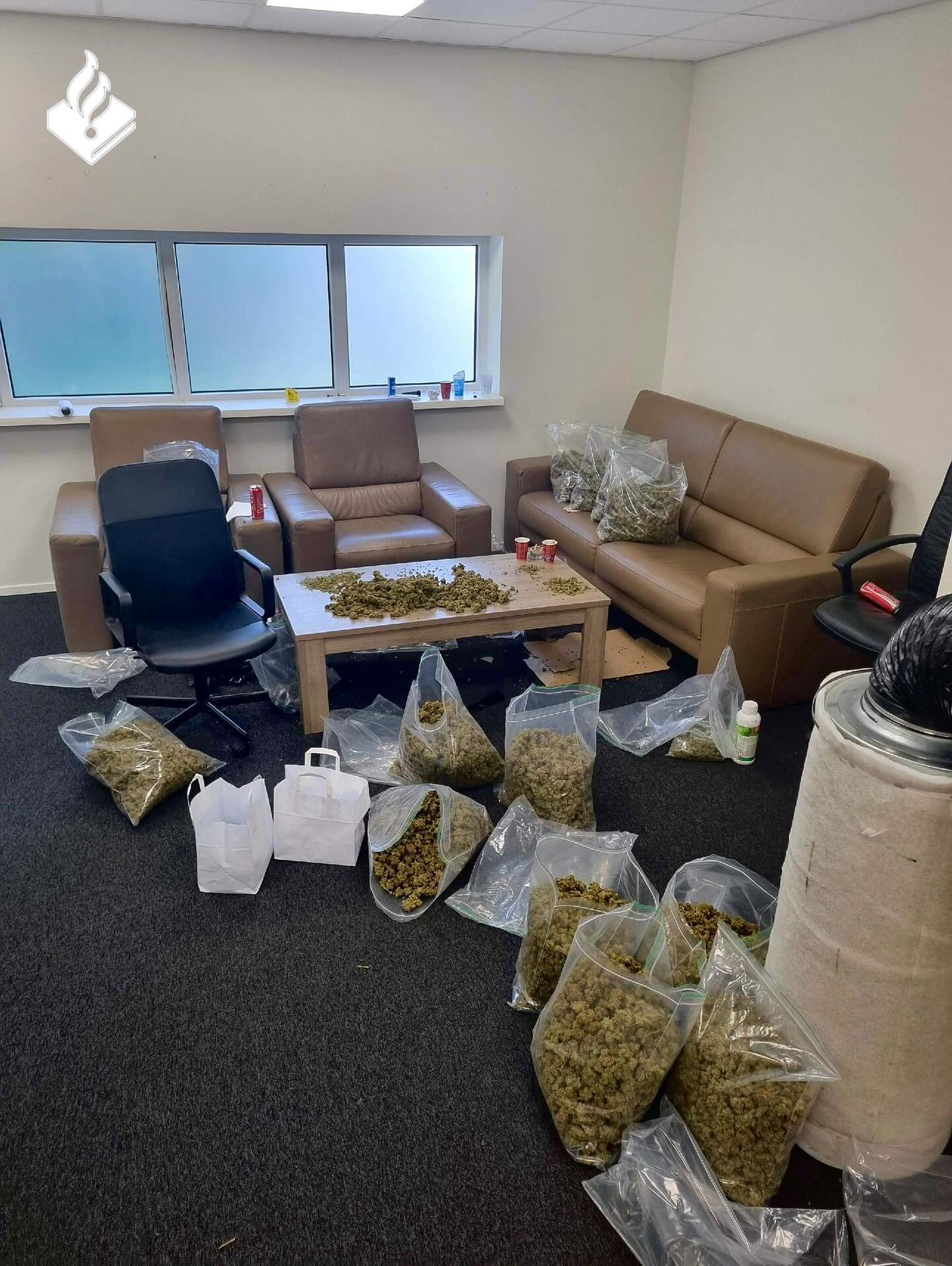 De politie: “Overal in de ruimte lagen resten van henneptoppen en hennepgruis. Daarnaast werden er onder andere weegschaaltjes, mesjes, machines voor luchtafvoer en grote bigshoppers aangetroffen.” Samenvattend: een typisch voorbeeld van door de bekende stinkmand vallen.