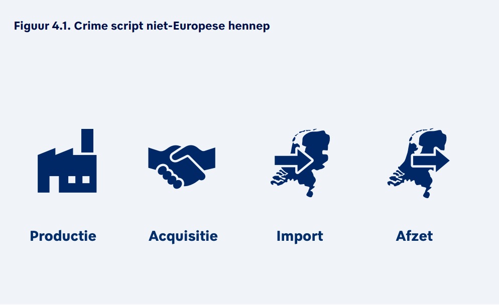 “Het criminele bedrijfsproces van niet-Europese hennep biedt hun de mogelijkheid om mee te liften op een in eerste instantie legale business”, legt Entken uit. “Sommigen zijn betrokken bij de legale teelt buiten Europa, al dan niet om geld wit te wassen. De betrokkenheid lijkt zich echter vooral voor te doen bij de handel. Nederlandse criminelen kopen niet-Europese hennep voor relatief lage prijzen aan en importeren deze in soms zeer grote hoeveelheden naar Europa.”
