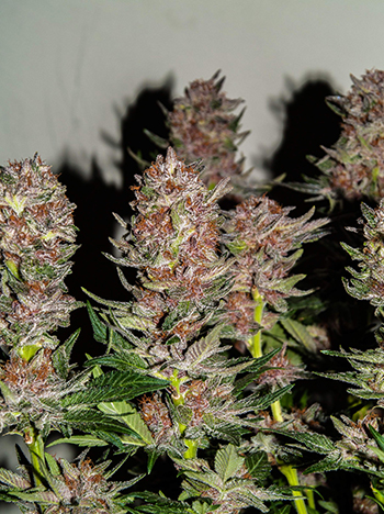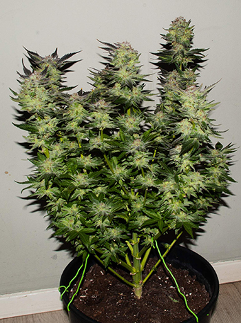 Ik heb de oogst nog niet gewogen, aangezien het nog te drogen hangt. Ik heb de hele planten daarvoor ondersteboven gehangen. Ik heb al wel wat kunnen proeven van een eerder geoogste plant die niet zo goed ging, en de mutant. De oogst van die planten viel erg tegen in vergelijking met deze twee, maar de smaak is heerlijk! Rood zomerfruit, bessen en een aards aroma. Het is superlekkere wiet en herinnert me aan die bubblelicious kauwgom van vroeger. Ook zeer tevreden over de Batmix, die we zeker weer gaan gebruiken, maar de kweek op kokos is mislukt en de mutant heeft erg weinig opgeleverd, afgezien van veel knipwerk. De goede feno’s zijn makkelijk te knippen en hebben een bizarre hoeveelheid trichomen en kogelharde toppen. Het laatste woord is vast nog niet over Granddaddy Purple gezegd, en ik denk dat het zeker een blijvertje is!
