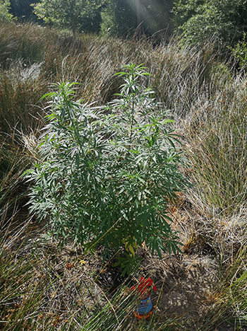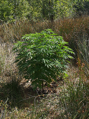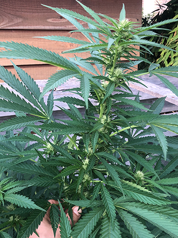 Update 2 september 2022: De planten gaan reuze goed! Hopelijk krijgen we een niet al te nat najaar, ondanks dat de natuur het hard nodig heeft. Hier is een overzichtsfoto en een close-up van de eerste topjes. De Pineapple Poison is de 3.50 meter voorbij en begint mooi te bloeien nu. Ik heb de keukentrap ernaast gezet voor de maat, het blijven ongelofelijke planten! Hoe ze in 4 maanden zo groot kunnen worden. Nog even genieten van ’t mooie groen voordat het herfstweer toeslaat. Ik wens iedereen een schimmelvrije en vruchtbare oogst toe! Selma