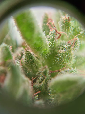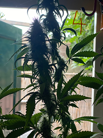 & Lemon OG) heb moeten toppen, zodat ze in m’n schuur passen en ik het 12/12 schema kan toepassen. Heeft een positief resultaat gehad (was te verwachten) want er zijn door het toppen meerdere toppen die stuk voor stuk aardig vol aan het worden zijn. Een beetje alsof ik de scrog-methode heb toegepast. Ben zeer benieuwd wat dat worden gaat, maar vooral hoe ze smaken. Op nr. 4 (Lemon OG) heb ik op twee topjes wat mannelijk stuifmeel gedaan dat ik al drie weken in een zakje had bewaard en waar zowaar zaadjes lijken te ontstaan. Ik dacht dat mannelijk stuifmeel hooguit 48 uur te gebruiken was. Niet dus.