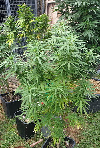 Update 6 september 2022: Even een kleine update van de Super Sativa Seed Club buitenwiet testplanten. Er begint meer en meer verschil te komen tussen dames #3, #4 & #5 (Pineapple Poison, Lemon OG en Black Lebanon) in de 11 liter potten, en #1 in de speciekuip (Lava Freeze) en #2 in de volle grond (Bruce Lemon Diesel).