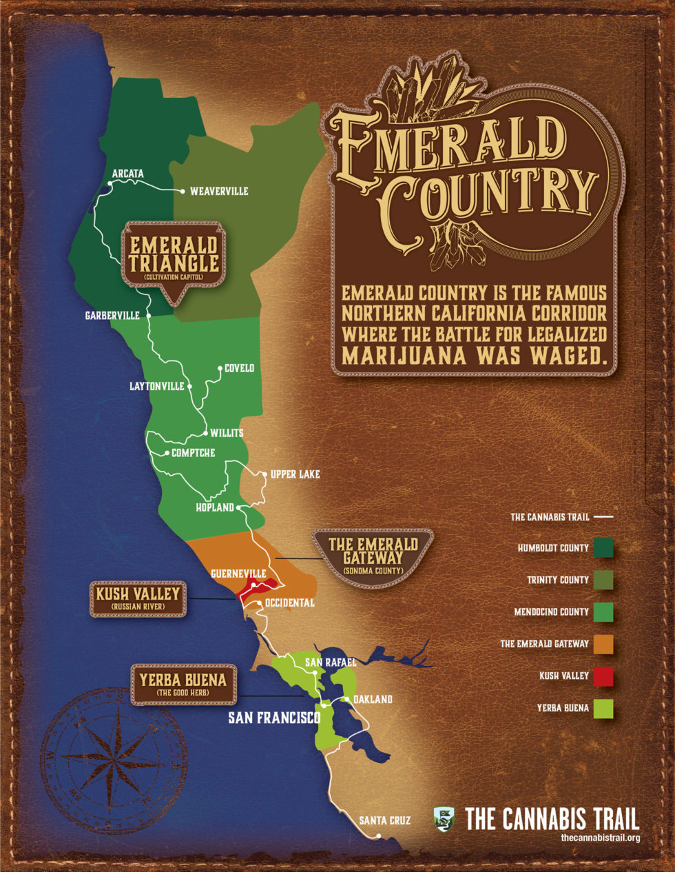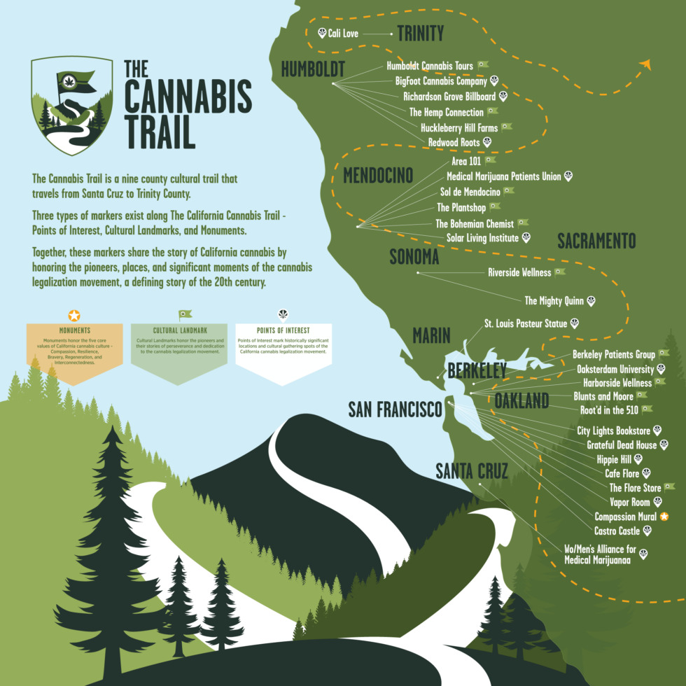 Brian Applegarth begon al in 2014 met The Cannabis Trail, maar het project kreeg pas vleugels toen lokale toeristenbureaus, zoals Visit Oakland en Visit Mendicono County, mee gingen doen.