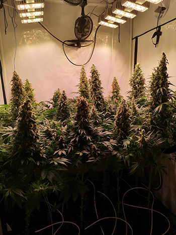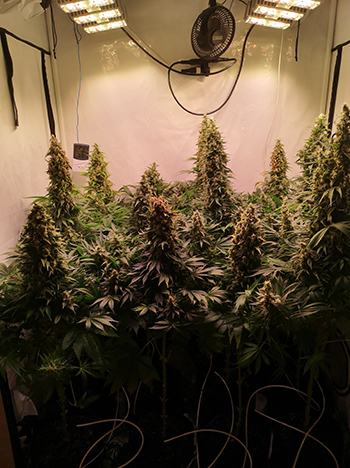 Het enige wat ik nu doen kan, is de aangetaste toppen weg te snijden en de kweek so snel mogelijk af te maken. De SANlight Q5W-Gen.2 LED lampen zijn nog steeds in full power modus en doen hun best. De toppen zitten vol met trichomen en glinsteren als gekken. De geur is fantastisch! Het is een heel indringende wietgeur met een vleugje zoet daarbij, dat aan vers gezaagd hout laat denken. Het doet me iedere keer watertanden…