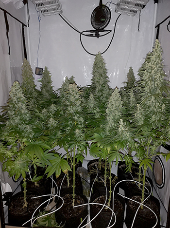 Aan het begin van week 13 stopte ik met de voeding en kregen de dames alleen nog water om de planten te spoelen, of flushen zoals dat in engels het. De 12 AK-47 van Serious Seeds zijn nu in de negende en laatste week van de bloei, en zijn tot kleine bomen uitgegroeid. Het formaat van de colas is verbijsterend en groter dan alles wat ik ooit gezien heb in een kleine 7-literpot.