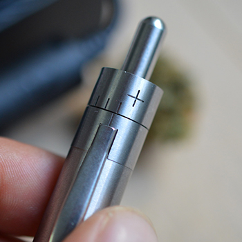 Om de Grasshopper met wiet te vullen schroef je de punt van de pen af. Eronder verschijnt een bowl waarin ongeveer een kwart gram wiet past.