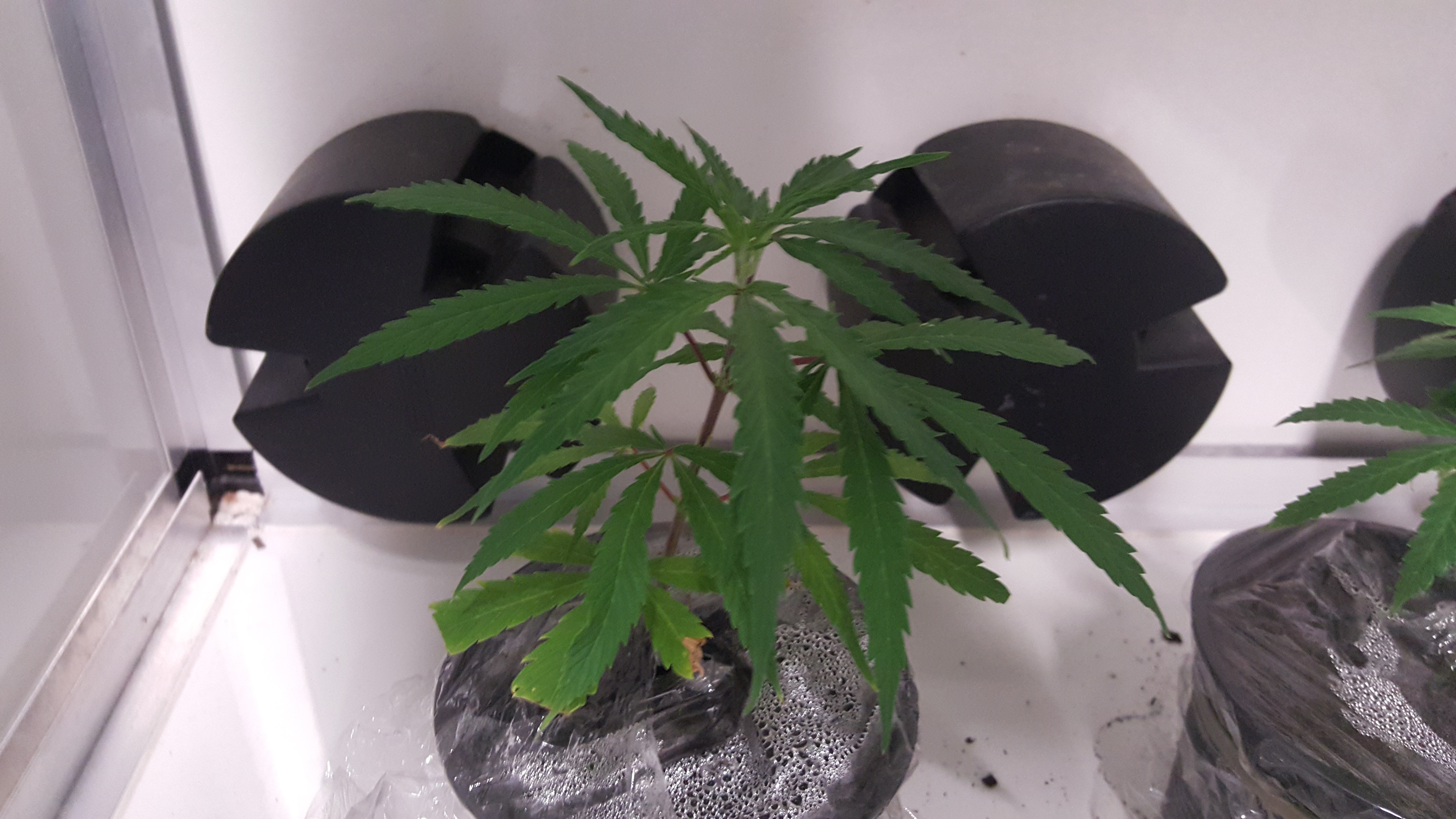 Precies een week geleden verplaatste Dokter Groen zijn stekken naar binnen. Hij zette ze over in iets grotere potjes en plaatste ze onder het warm paars gekleurde LED licht van de RollingStoned G-Kit. Maar nu waren de plantjes alweer toe aan een groter onderkomen.