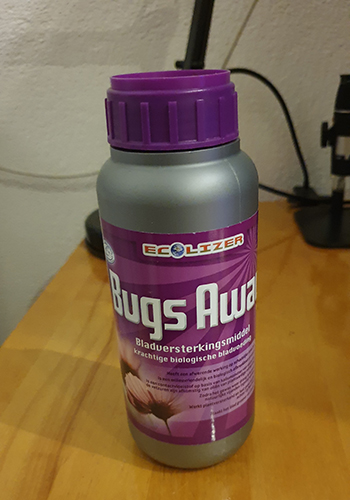 Ieder bestrijdingsmiddel heeft voor- en nadelen. Chemische Bestrijdingsmiddelen gebruik ik sowieso niet. Ik wil mijn wiet straks nog gebruiken en daarbij niet het risico lopen dat er bestrijdingsmiddelen in mijn wiet achterblijven. Biologische bestrijdingsmiddelen zijn er ook. Bijvoorbeeld Ecolizer Bugs Away. Hier heb ik twee keer gebruik van gemaak in het verleden, met verschillende resultaten.
