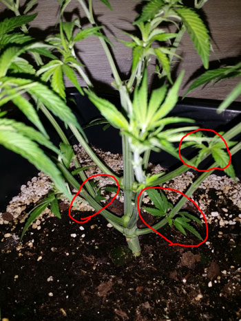 De OG Double Bubble plantjes groeiden lekker door in de week na de snoeibeurt en het lijkt erop dat ze zich weinig aantrekken van mijn gepluk. Maar als ik de foto’s thuis op de computer nog eens goed bekijk, lijkt het of de bladeren hier en daar een beetje vergelen. Gele blaadjes zijn vaak een een eerste teken van een tekort in de voeding, of andere problemen.