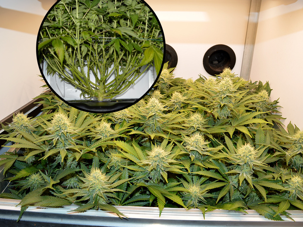 Hydroponisch scroggen gaat ook geweldig: 1 Sneeze wietplant vult deze kweekkast tot in elke hoek.