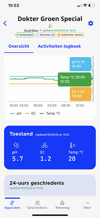 Ik heb even geworsteld om de software van Bluelab goed draaiend te krijgen op de Mac-computer. Gelukkig heeft Bluelab een goede klantenservice en kregen we de boel draaiend. Helaas nog niet zonder horten of stoten, maar nu is er een update: Bluelab Edenic. Daarmee draait de communicatie met de Bluelab Guardian Connect zoals het hoort en kan ik via de nieuwe iPhone-app overal de pH-, EC- en temperatuurwaarden controleren. In de toekomst wordt dit aangevuld met nog meer functies.