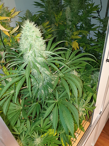 Maak je geen zorgen over de voorraad van Willie Wietman want die wordt binnenkort weer goed bijgevuld. De twee Sneeze planten uit zijn kleinste kweekkast zijn al om, en de grootste slag moet nog komen. Dat zijn natuurlijk de vier grote planten uit de G-Kit XL die nu al letterlijk gebukt gaan onder hun eigen gewicht.