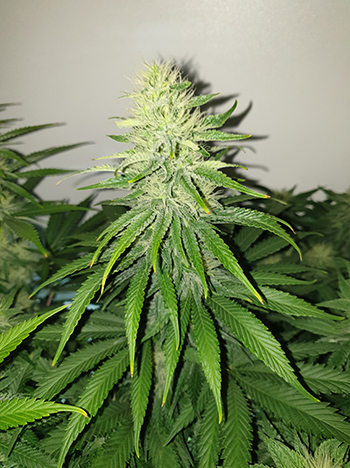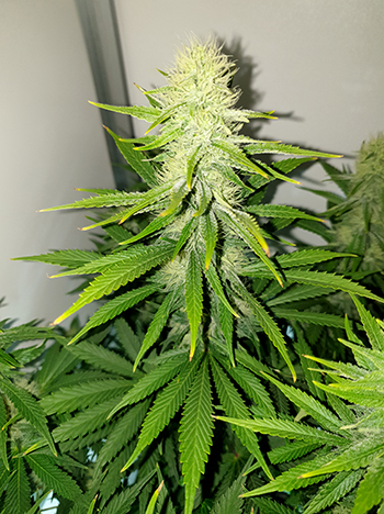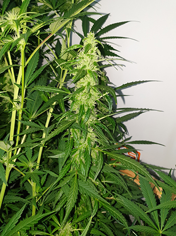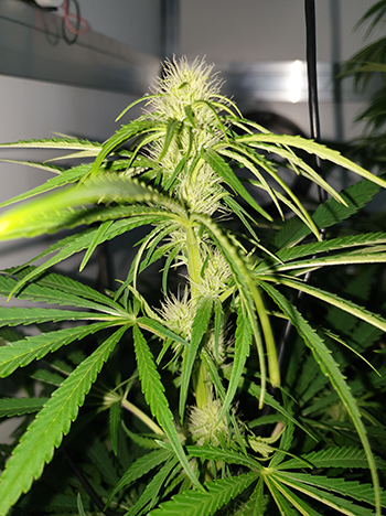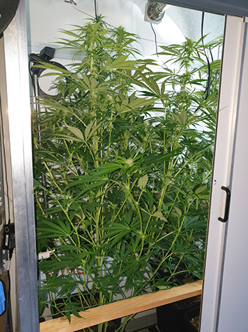 Op de foto’s hierboven zie je de grootste toppen van beide planten. Ze hebben een gemiddelde diameter van 2,4 centimeter en er zijn al redelijk wat trichomen te zien. De toppen zijn ook al een beetje kleverig als je er per ongeluk tegenaan stoot. De planten hebben een gemiddelde hoogte van 78 centimeter en staan 25 centimeter onder mijn oude vertrouwde 150 Watt G-Bars.