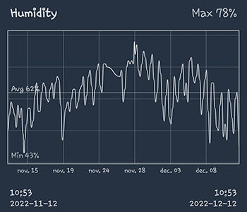 In de grafieken zien we dat de temperatuur in de kleine kweekkast al enige tijd aan het dalen is. In de andere grafiek zien we tegelijk dat de luchtvochtigheid stijgt.
