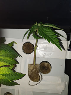 De helft van de stekjes hebben inmiddels wortels. Nog een paar dagen en ze kunnen over naar een potje, en over naar mijn kleinere kweekkastje. Op dit moment wordt die echter nog bewoond door een basilicum plant. Die gebruik ik namelijk om te testen of de Hans Panel die daarin hangt wel goed is. Ik heb een tweede Hans Panel geleend om het verschil te kunnen zien.