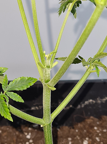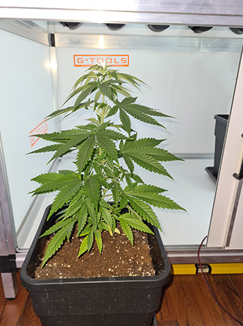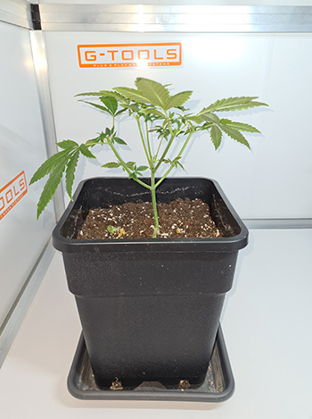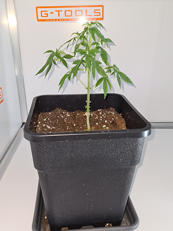 Ik heb de 315 Watt CMH deze morgen ook wat harder gezet, op 80 procent van het vermogen. De hoogte van de lamp is nog steeds ongewijzigd, op 40 centimeter boven de kleine dames. Die krijgen 100 milliliter water wanneer ze droog staan. Dit bekijk ik elke dag. Ik laat de dames toch nog één week onder het 18/6 lichtschema staan (18 uur licht, 6 uur donker). De plantjes zijn niet veel gegroeid dus een weekje extra groeien kan geen kwaad.