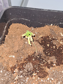 In de CNNBS G-Kit met verhogingsset gaat het herstel jammer genoeg minder snel. Op zich is het wel logisch want deze jongedame staat onder een 100 Watt Hans Panel LED, en dat is natuurlijk minder vermogen dan de 315 Watt CMH. Het plantje ziet er niet zo happy uit maar op de video is te zien dat er nog beweging in zit. En dus hou ik hoop. De kokos is een nieuw kweekmedium voor mij, dus ik weet niet zo goed wat er gaat gebeuren. Als er volgende week geen voortgang is, dan zal ik helaas moeten stoppen met dit plantje.