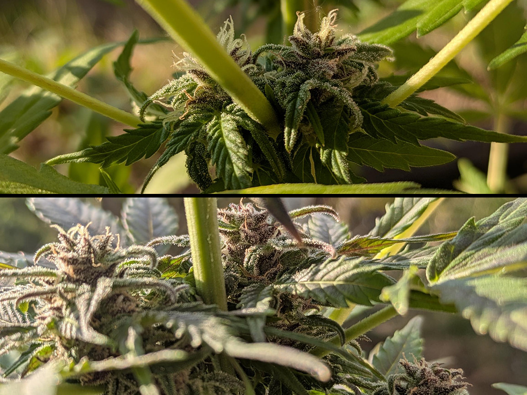 De hoofdtop gaat de laatste fase van de bloei in. Ook al is het mooi weer, het betekent goed opletten voor eventuele ongewenste schimmel. Vooralsnog ziet alles er heel veelbelovend uit. Hopelijk kunnen we eind deze maand de eerste toppen oogsten.