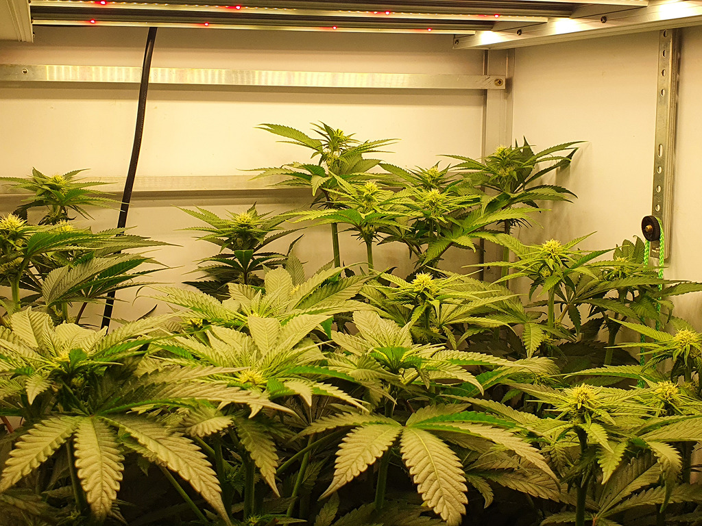 Het kweekoppervlak is mooi gevuld; de maximale hoogte onder de LED kweeklamp helaas ook…