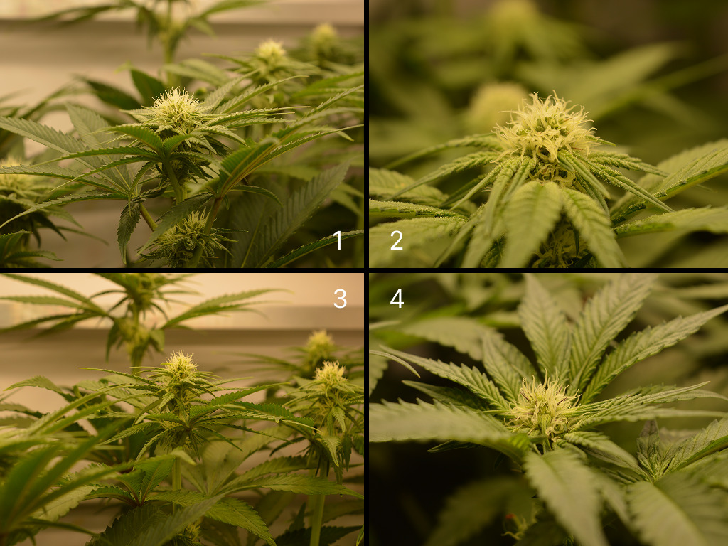 De Somari’s zien er mooi uit, vind je niet? En ben je met me eens dat de toppen van Somari #3 wat meer op die van een sativa lijken dan die van de andere drie planten? Als #3 maar niet nóg verder groeit dan vind ik het best, al ben ik bang dat ze dat wel gaat doen…