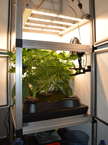 Dokter Groen is weer beter en duikt zijn kweekkast in om zijn Spicebomb planten te dieven. De onderontwikkelde takken die vorige week onder een paar grote schutbladeren vandaan kwamen, zijn mooi uitgelopen. De poedervoeding van Druid blijkt heel eenvoudig om mee te werken, en houdt zichzelf automatisch op de juiste pH-waarde.