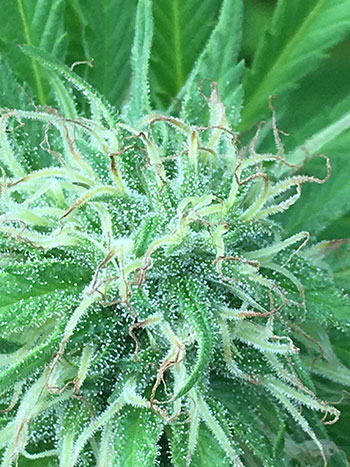 Na een maandje bloeien kreeg ik heel wat mooie witte bloeihaartjes. Iets later, op 22 september, kwamen de trichomen ook op de suikerblaadjes. In deze periode werden er een aantal bladeren geel en begonnen af te vallen. Er stonden al heel wat witte bloeihaartjes en mooie toppen werden gevormd. Tegen 30 september begonnen de meeste toppen bruine bloeihaarjes te krijgen, maar de trichomen zagen er nog doorzichtig uit door de microscoop die ik speciaal voor mijn planten had gekocht.