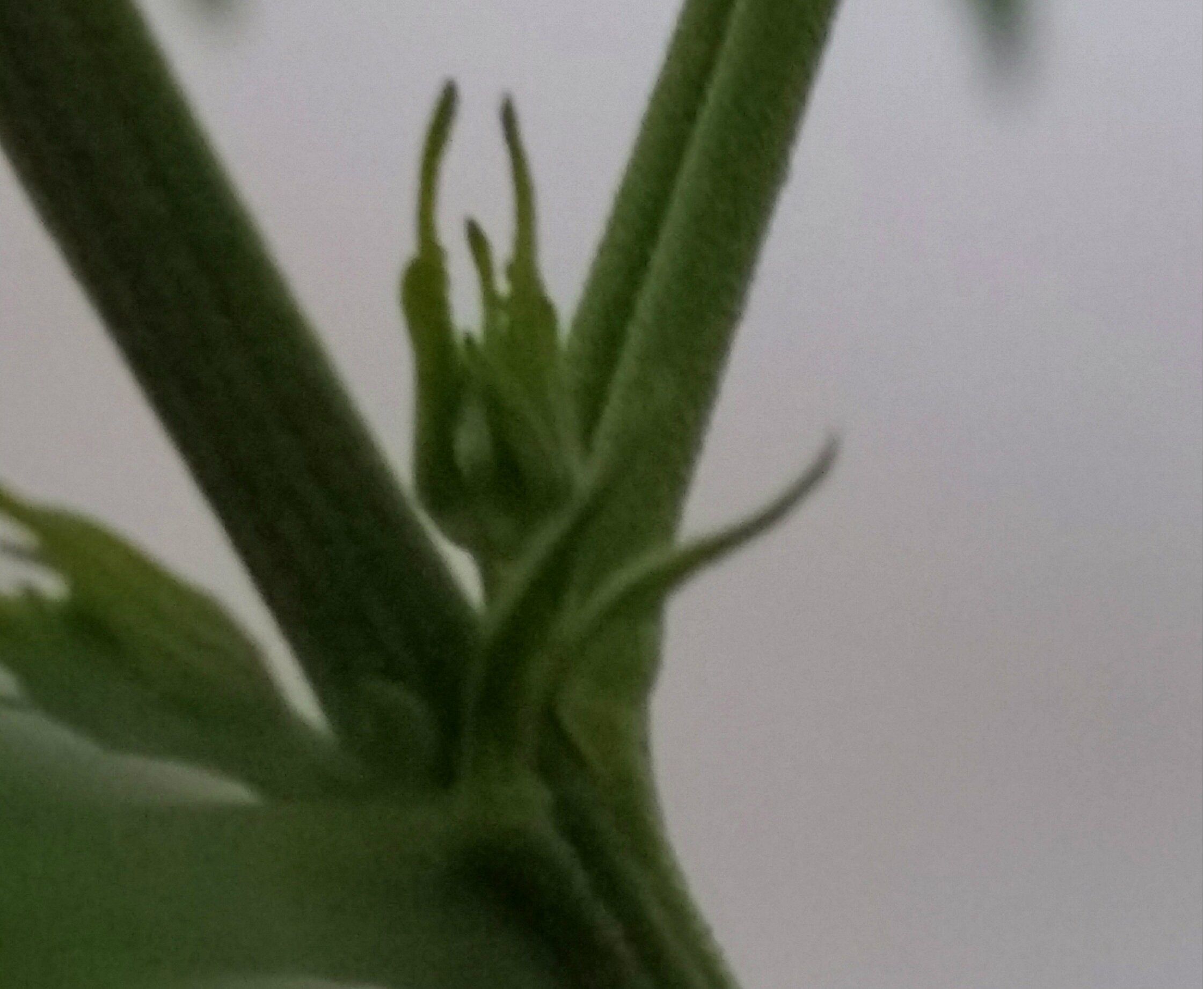 Ik heb het vermoeden dat twee van mijn planten hermafrodiet of mannelijk zijn maar ik ben er niet helemaal zeker van. Ik heb er een foto van gemaakt, misschien kan iemand het zien. Anders gaan we er sowieso snel achter komen want ik ga de bloei door te verduisteren afdwingen. Omdat ik niet op de natuur wil wachten met bloeien zal ik de dames na volgende week, wanneer ze helemaal aan hun nieuwe potten gewend zijn, drie volle dagen in het donker zetten. Daardoor zullen ze hopelijk in een keer zoveel bloeihormonen aanmaken dat ze daarna meteen beginnen aan hun bloeifase, we zullen het zien. Over twee weken meld ik me weer, een groene groet!