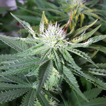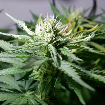 Hallo ganja girls en cannabis boys, hoogste tijd voor jullie wekelijkse portie groenvoer! Ik nam vanmorgen een duik in mijn kleine kweekkastje en zag tot mijn verbazing dat een paar topjes hier en daar gebleekt waren door het licht van de LED. De dames waren nog net niet tegen de LED aangegroeid zoals een paar weken geleden, maar ze kwamen erg dicht in de buurt. Zó dicht dat het licht het bladgroen uit de toppen trok, kijk maar eens.