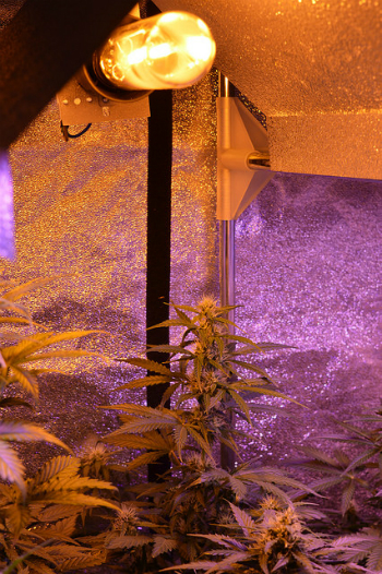 Het is soms even inventief zoeken naar oplossingen, maar ik heb de lamp hiermee toch weer op een acceptabele hoogte gekregen. Het is wel te hopen dat de planten nu écht niets meer groeien want hoger kan de lamp gewoon niet, of ik moet een gat in het plafond van mijn G-Kit gaan zagen. Nee, als ze nog verder doorgroeien dan zal ik ze weer een keer moeten supercroppen, en dat zou jammer zijn want de toppen beginnen zich nu wel mooi te vormen, ik heb ook al de nodige harskliertjes gezien. Voeding krijgen de dames nog steeds niet, alleen water. Overigens komt er een geur van met name de Holy Grail Kush af die onbeschrijfelijk is, het is jammer dat ik juist deze soort in de kleinste potjes heb gezet.