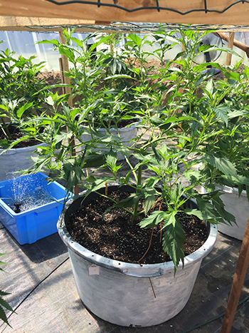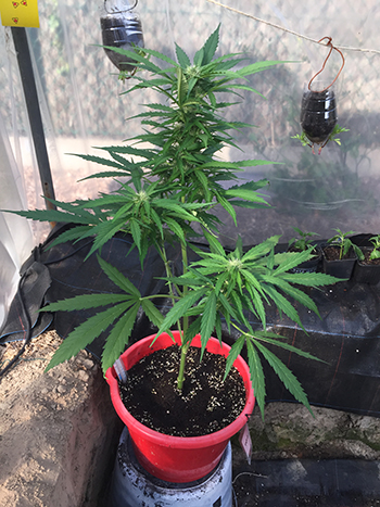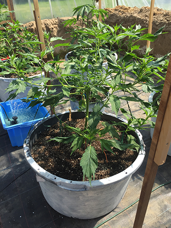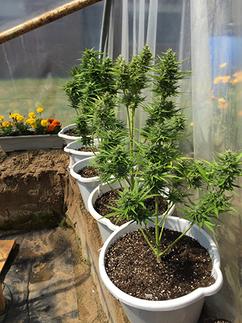 In de verdiepte kas van Mogow genieten wietplanten van omstandigheden die je normaal gesproken eerder in een tropisch regenwoud verwacht. De kas zorgt voor weldadige warmte, een fontein houdt de luchtvochtigheid op peil. Vier bloeiende autoflowers zorgen voor een voorproefje op de oogst.