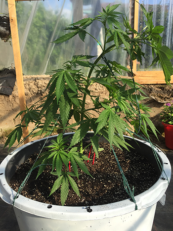 16 juni: de planten groeien goed, de wortels hebben het 5 tot 10 graden koeler dan de planten zelf. Dat vinden ze heel prettig. Bij ongeveer de helft van de planten is het fimmen niet goed gelukt. Hierdoor groeien ze wat hoger dan ik eigenlijk wil. Geen probleem verder, dan buig ik nog wat meer, en fim ik ze gewoon nog eens.